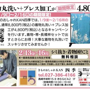 着物クリーニングキャンペーンは、2月16日まで実施中です。